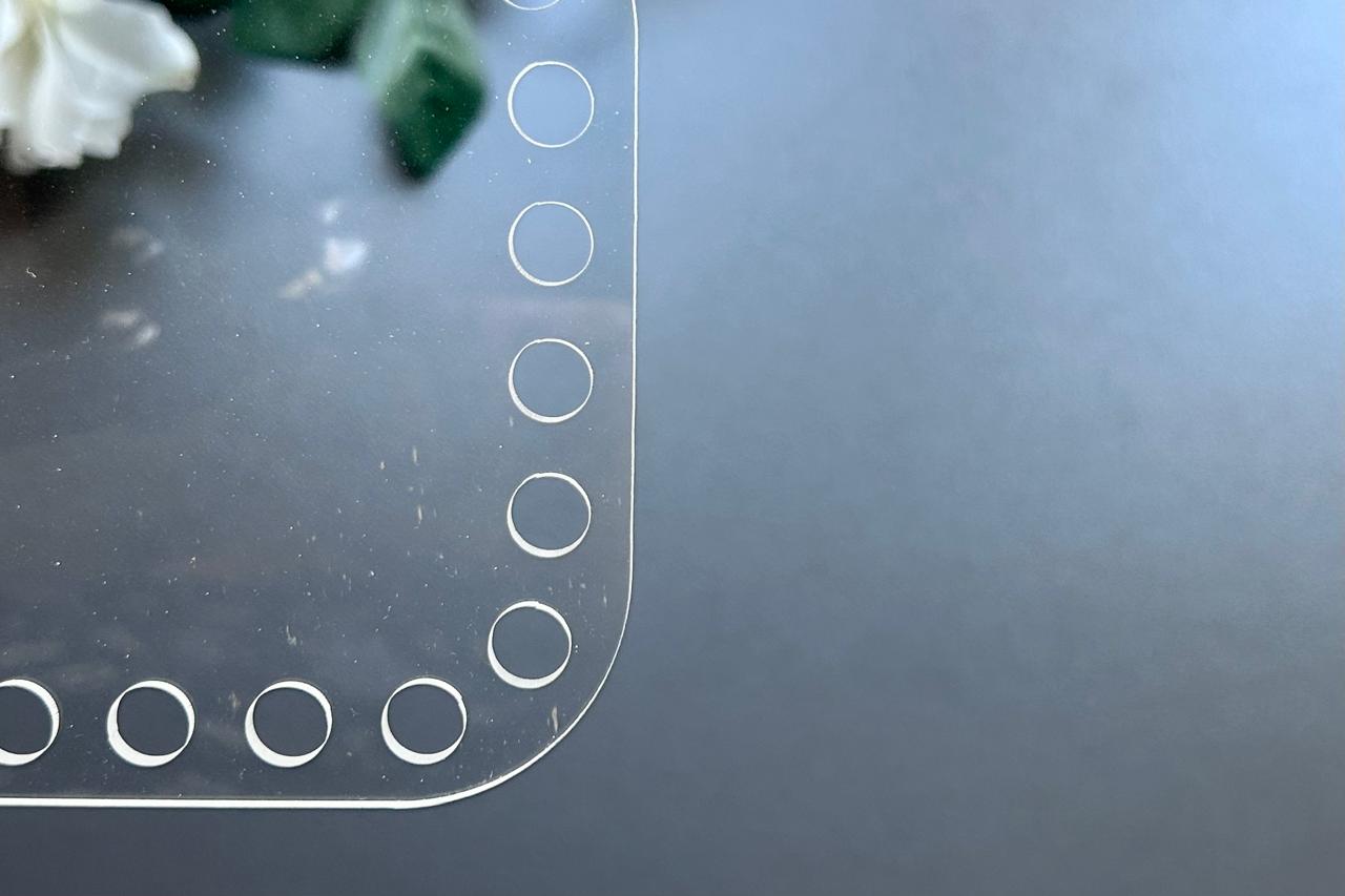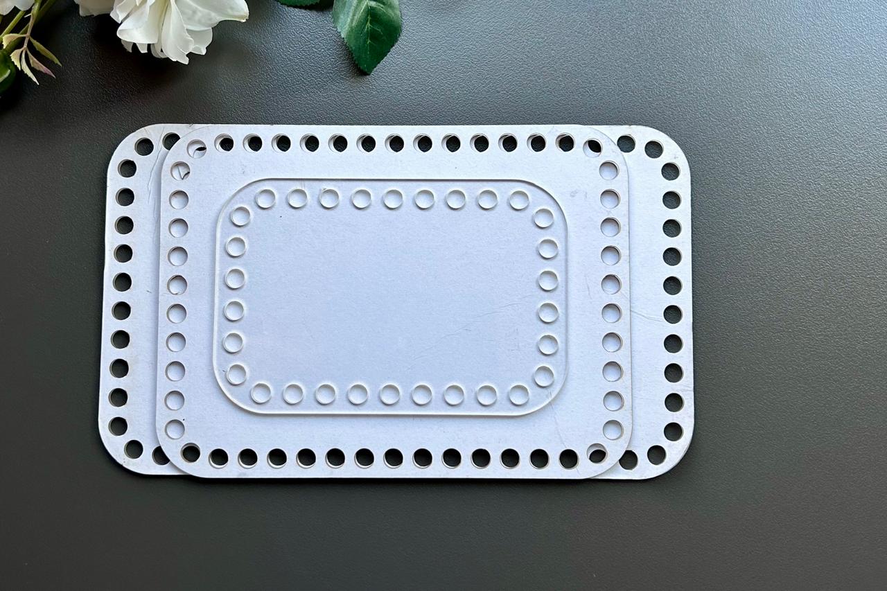 Create sturdy and stylish handmade crochet or bead bags and baskets with our Rectangle shape Clear Acrylic Base Sheet.Crafted from 3 mm thick premium transparent acrylic, it is lightweight yet strong, offering excellent stability while letting your beautiful design stand out. With 8 mm pre-drilled holes, it’s easy to attach threads, yarn, or cords for a neat and professional finish. Available in 3 convenient sizes, these durable bases are perfect for a variety of bag and basket projects.
