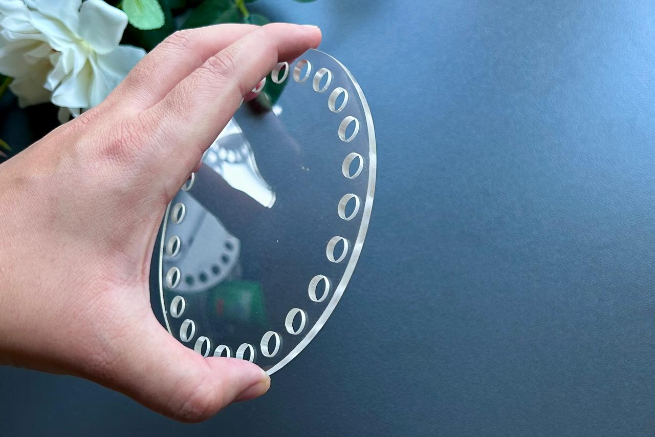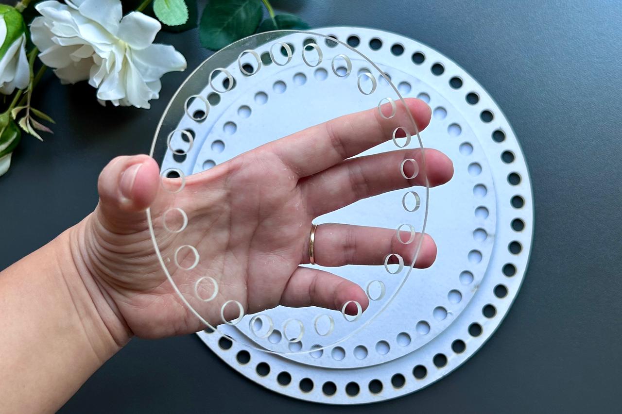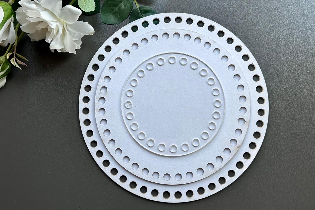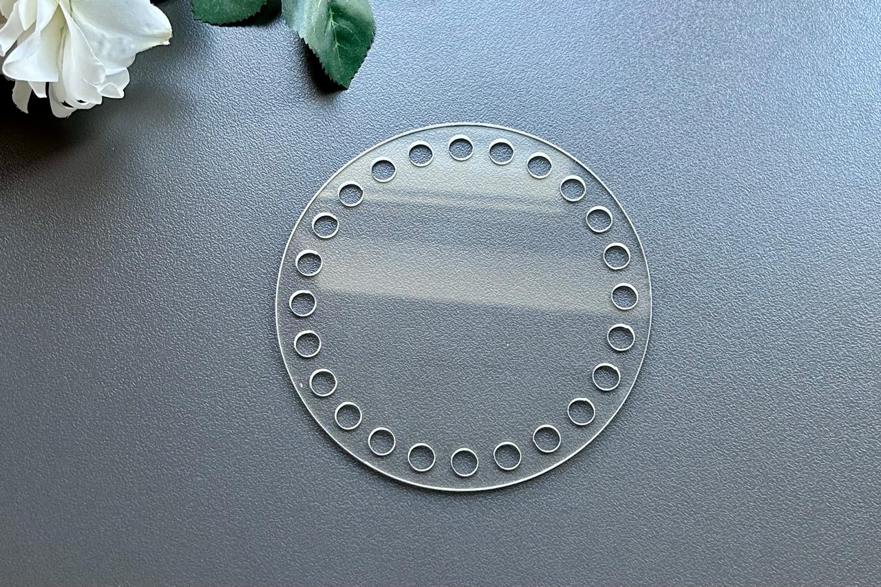 Create sturdy and stylish handmade crochet or bead bags and baskets with our Round shape Clear Acrylic Base Sheet. Crafted from 3 mm thick premium transparent acrylic, it is lightweight yet strong, offering excellent stability while letting your beautiful design stand out. With 8 mm pre-drilled holes, it’s easy to attach threads, yarn, or cords for a neat and professional finish. Available in 3 convenient sizes, these durable bases are perfect for a variety of bag and basket projects.