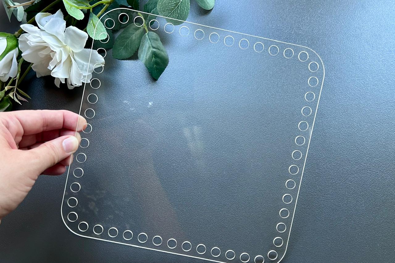 Create sturdy and stylish handmade crochet or bead bags and baskets with our Square Clear Acrylic Base Sheet.