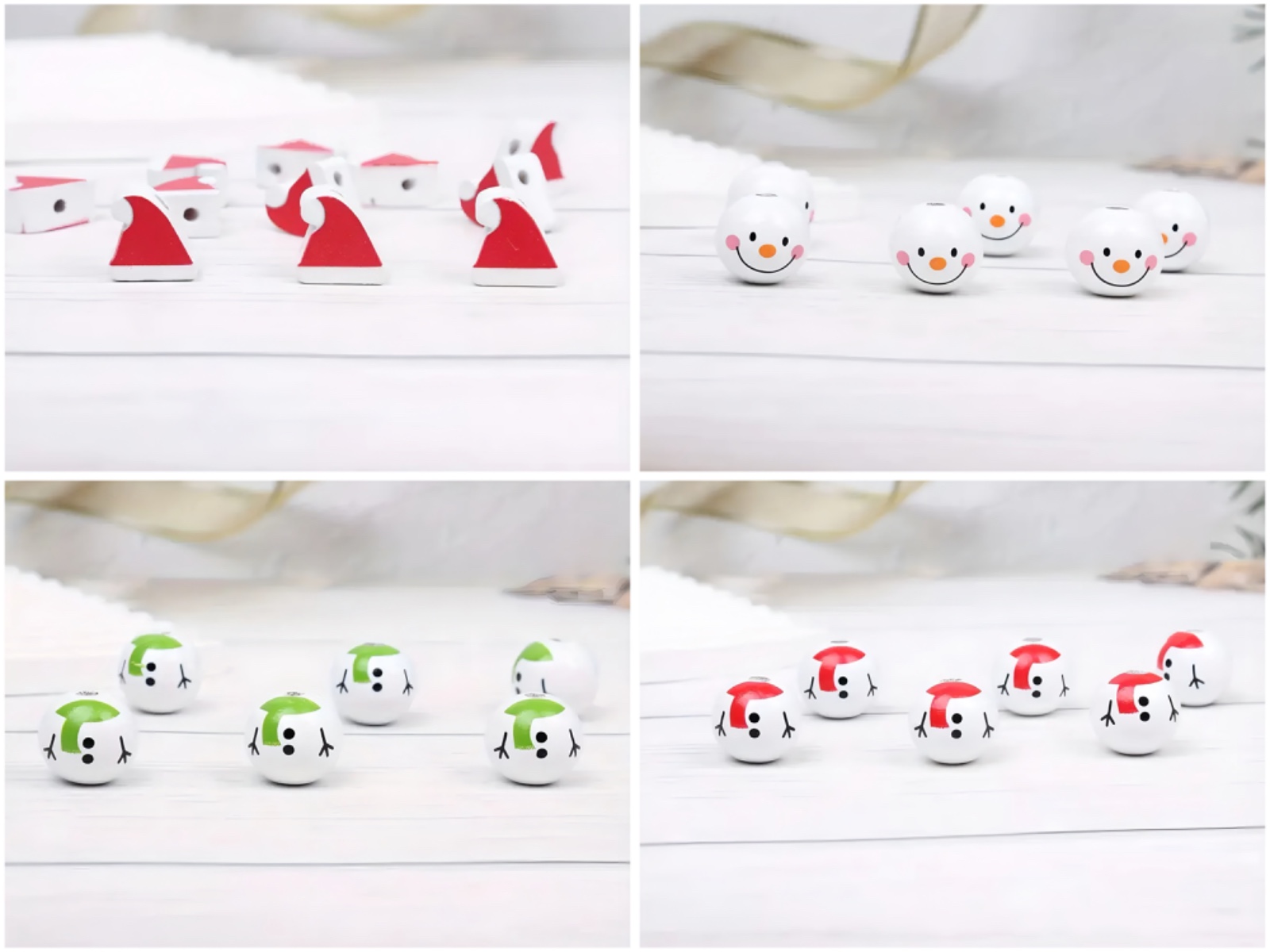 Bring festive charm to your DIY projects with this 4-piece wooden bead set, designed especially for Christmas decorations. The set includes: