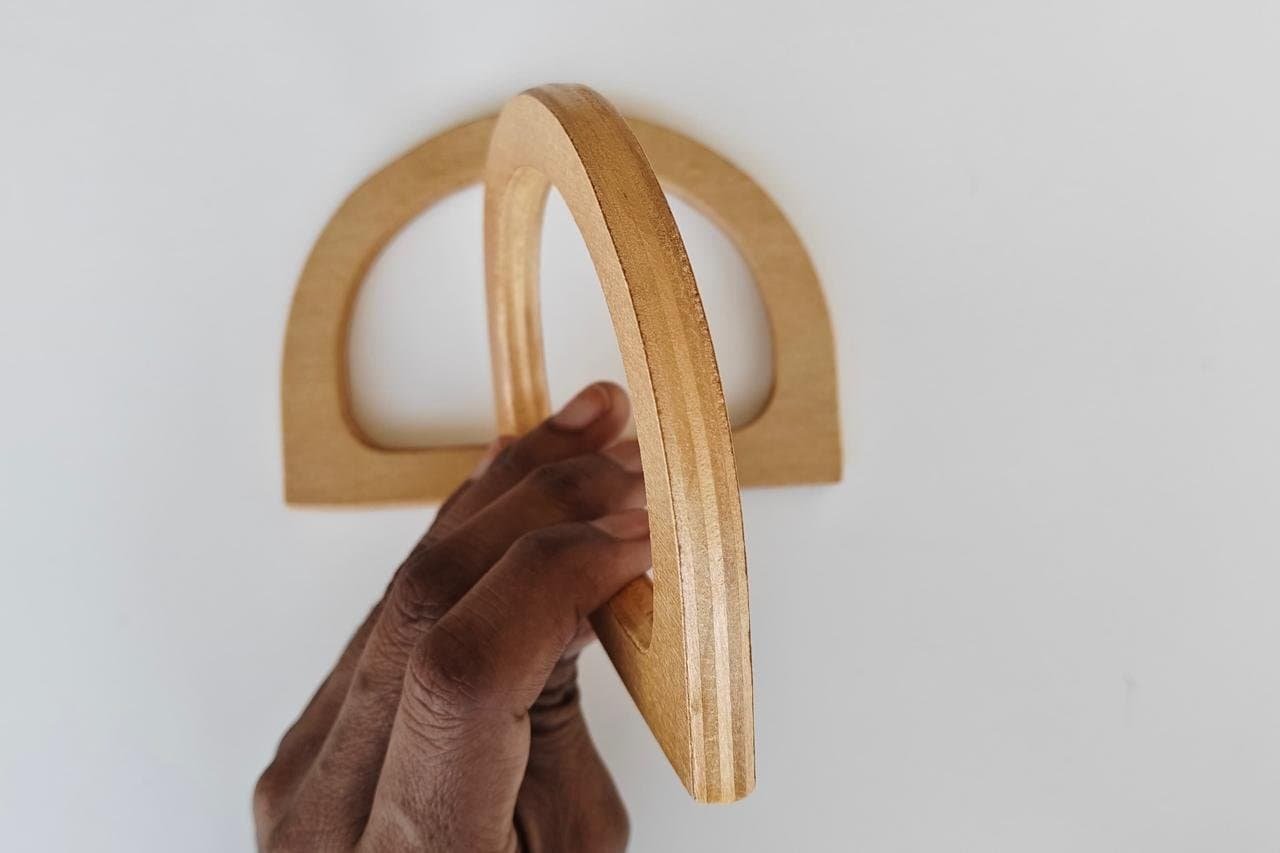 D Shape Wooden Natural Polished Bag Handle- Set of 2Pc